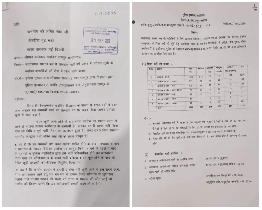 रायपुर। छत्तीसगढ़ आर्म्स फोर्स (CAF) भर्ती 2018 में चयनित 417 वेटिंग लिस्ट अभ्यर्थियों की कहानी अब बेरोजगारी, निराशा और उपेक्षा की दास्तां बन चुकी है। सात साल बीत चुके हैं, 3 हजार से ज्यादा पद खाली हैं, लेकिन वेटिंग लिस्ट वालों को अब तक नियुक्ति नहीं मिली। सरकारें बदलती रहीं, मंत्री-नेता आश्वासन देते रहे, और अभ्यर्थी दफ्तरों–बंगलों के चक्कर लगाते रहे।