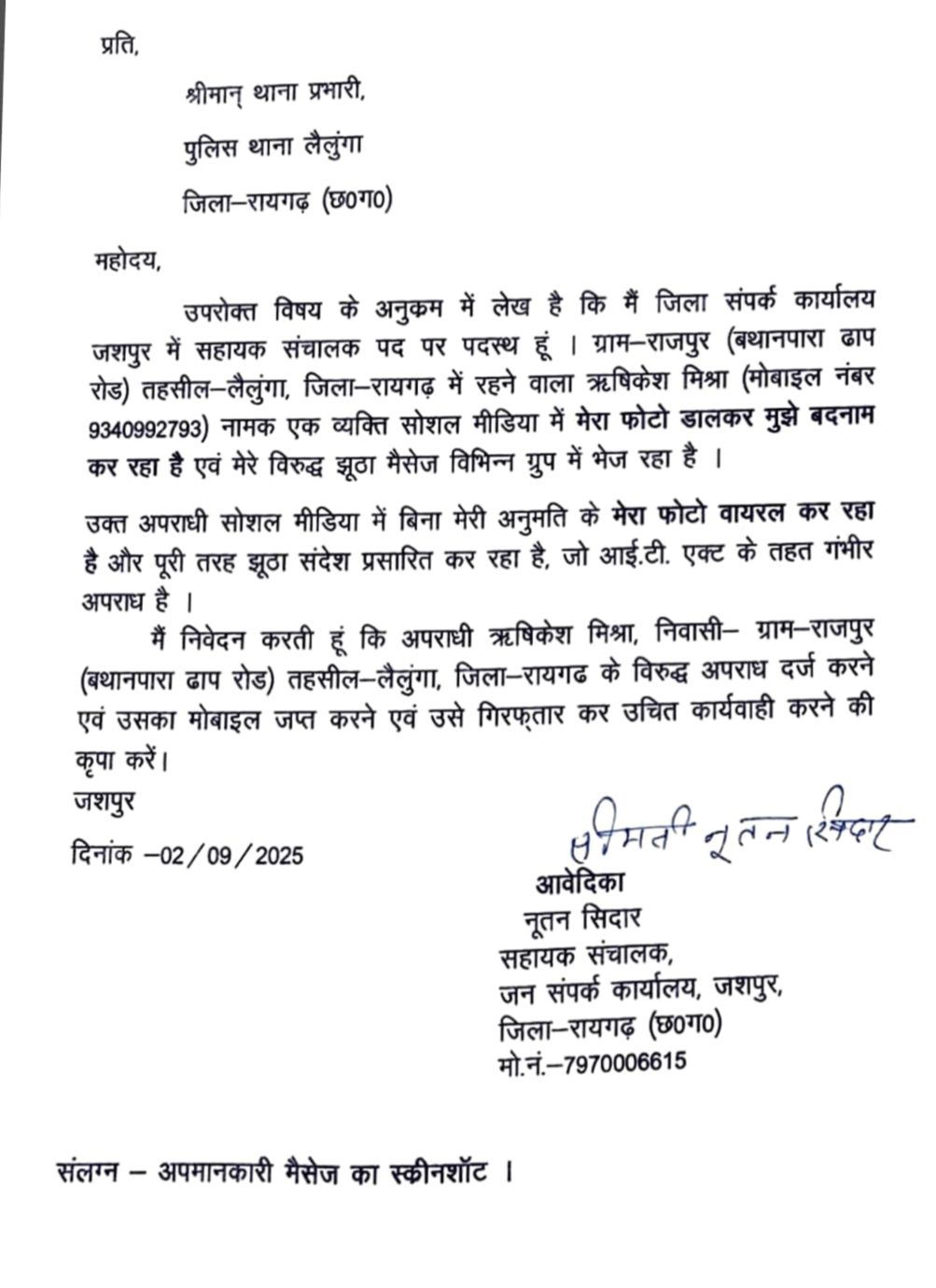रायगढ़। क्या रायगढ़ पुलिस का काम अपराधियों को पकड़ना है या रसूखदार ‘साहबों’ की चमचागिरी करना? यह सवाल इसलिए, क्योंकि जशपुर के सहायक जनसंपर्क अधिकारी (APRO) नूतन सिदार द्वारा सोशल मीडिया पर की गई बदनामी के मामले में पुलिस विभाग ने ‘शर्म’ को भी पीछे छोड़ दिया है। और इस पूरे खेल में अब सबसे बड़ा सवालिया निशान एसडीओपी (SDOP) धरमजयगढ़ की भूमिका और उनकी मॉनिटरिंग पर लग गया है।