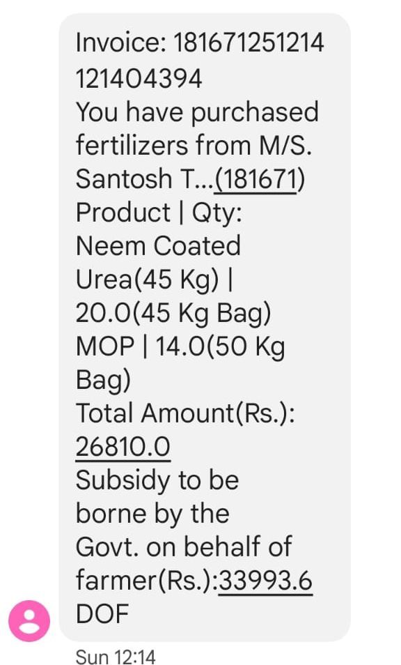 किसान के मोबाइल पर आए मैसेज के मुताबिक, उसने 1 नहीं, बल्कि 34 बोरी खाद खरीदी है :