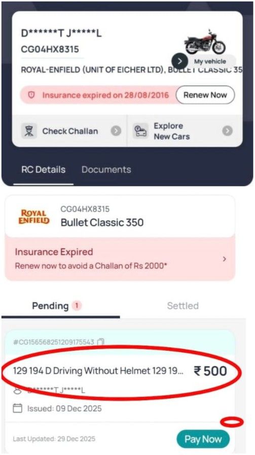 बिना हेलमेट, बिना इंश्योरेंस : ‘सुपरकॉप’ मोड में दुष्यंत जशपाल – सिविल लाइन थाने में पदस्थ पुलिसकर्मी दुष्यंत जशपाल इन दिनों अपनी दबंगई को लेकर चर्चा में हैं। जनाब शहर की सड़कों पर बिना हेलमेट, बिना वैध बीमा और बिना PUC के बेखौफ फर्राटा भर रहे हैं। हद तो तब हो गई जब उनकी बाइक पर ‘अनधिकृत ढोलकी साइलेंसर’ का शोर सुनाई दिया, जो ध्वनि प्रदूषण के मानकों की खुलेआम धज्जियां उड़ा रहा है। यह किसी एक दिन की भूल नहीं, बल्कि वर्दी के अहंकार में किया जा रहा निरंतर उल्लंघन है।