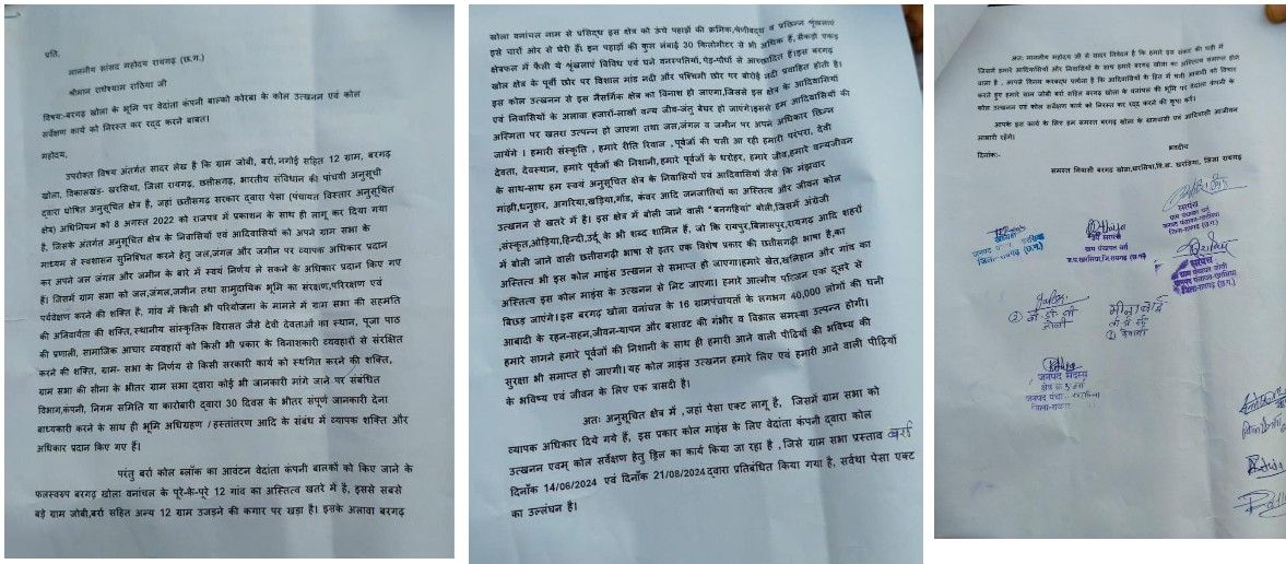 “हमारे पूर्वजों की निशानी नहीं मिटने देंगे” – ग्रामीणों ने बेहद भावुक होकर लिखा है कि इस कोल माइनिंग से मझवार, मांझी, धनुहार, गोंड, कंवर और खड़िया जैसी जनजातियों का अस्तित्व मिट जाएगा। पत्र में कड़े शब्दों में कहा गया है कि: