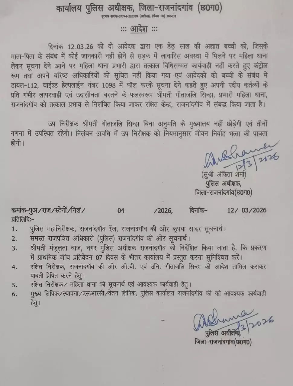 - जांच के आदेश: नगर पुलिस अधीक्षक श्रीमती मंजूलता बाज को प्रकरण की प्राथमिक जांच कर 7 दिनों के भीतर रिपोर्ट सौंपने के निर्देश दिए गए हैं।