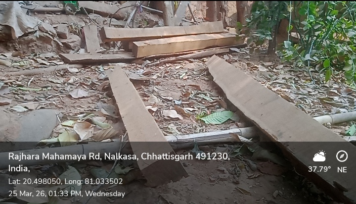 बालोद जिले के डौंडी वन परिक्षेत्र अंतर्गत कोटागांव क्षेत्र में वन समिति अध्यक्ष अर्जुन सिंह के घर से सागौन की चिरान मिलने की घटना ने पूरे इलाके में सनसनी फैला दी। भुरकाभाट ग्राम में स्थित उनके आवास पर गुप्त सूचना के आधार पर जांच की गई, तो वहां भारी मात्रा में सागौन का चिरान पाया गया। जीयो लोकेशन तस्वीरें इस बात की पुष्टि करती हैं कि यह चिरान ताजा कटाई का है। स्थानीय सूत्रों का दावा है कि डौंडी वन विभाग के सिपाही गोपी साहू और कोटागांव वन समिति अध्यक्ष अर्जुन सिंह की सांठगांठ से इस क्षेत्र के घने जंगलों से सागौन की अवैध कटाई और तस्करी का सिलसिला चल रहा था।