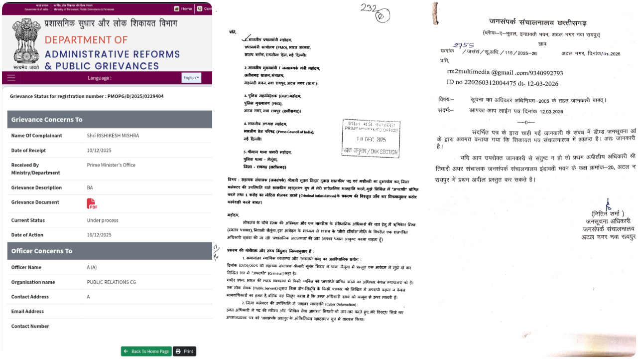 PMO से छत्तीसगढ़ के जनसंपर्क विभाग पहुंची शिकायत हुई ‘गायब’? पोर्टल कह रहा ‘जांच जारी’, विभाग कह रहा ‘शिकायत मिली ही नहीं’!…